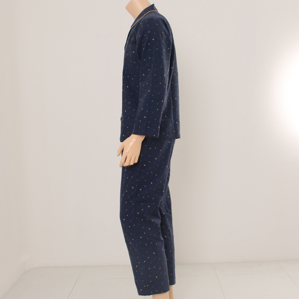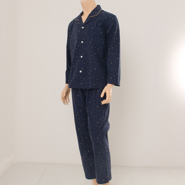 딥한 네이비 칼라에 밤하늘의 쏟아지는 별처럼 작은 별 달이 엘로우 칼라로 프린트된 동절기 제품입니다.