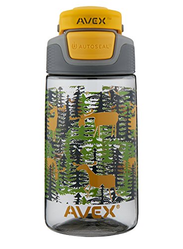The AVEX freeride water bottle features a patented AUTOSEAL lid with press-to-drink button that automatically seals between sips to eliminate spills and leaks. This BPA-free water bottle also has a spout Shield to protect against dirt and an ergonomic clip-on handle that attaches to backpacks and other gear. Handle folds down out of the way when not in use. This bottle also features glow-in-the-dark lid and graphics. Don't let the looks fool you; this water bottle is rugged and is top-rack dishwasher safe. No plastic odors or taste because this water bottle is made out of FDA-approved, BPA-free Tritan. Water bottle is top-rack dishwasher-safe.Feature