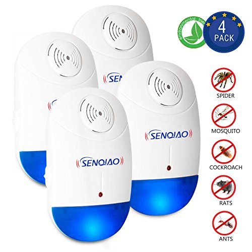Pest Repeller-SENQIAO Ultrasonic Repellent Electronic Plug In Repeller for Insects Best Repellent for Cockroach,Rodents,Flies,Bugs,Ants,Mice,Spiders,Fleas(Pack of 4)