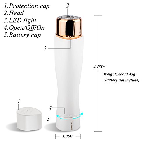 Studio : TANAAB Publisher : TANAAB Binding : Misc. Product Description Women's Facial Hair Remover is a revolutionary new device that erases facial hair instantly and painlessly. an easy, painless and hypoallergenic way to get rid of unwanted facial hair, an alternative to waxing that doesn't irritate your skin, Save the time or money for waxing, This discreet and stylish facial remover is sleek and discreet. No one has to know what's really in your bag! Recommended by dermatologists, Rose Gold color head is hypoallergenic and gentle on all skin types. Built-in LED light so you never miss a hair! No nicks, redness, or irritation. For FLAWLESS feel and a FLAWLESS finish - you can trust. A finish as smooth as waxing! with facial hair gone, your makeup application is easy and FLAWLESS. Facial Hair Removal for Women, Requires 1 AA Battery - included. Suitable for women of all ages! 0