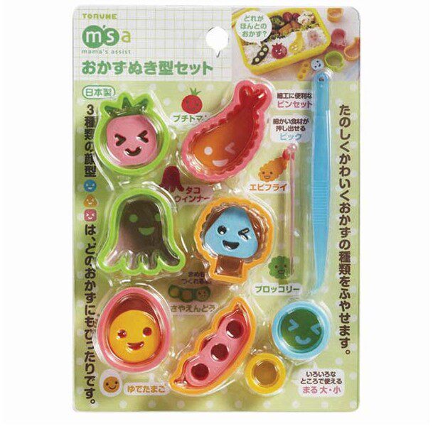 超人气蔬果造型压花模,食品级接触材质,(西红柿,天妇罗,火腿,菜花,鸡蛋,豌豆),让芝士,火腿,蛋饼,饭团都不再是死板的平面,带表情模哦,非常可爱。
