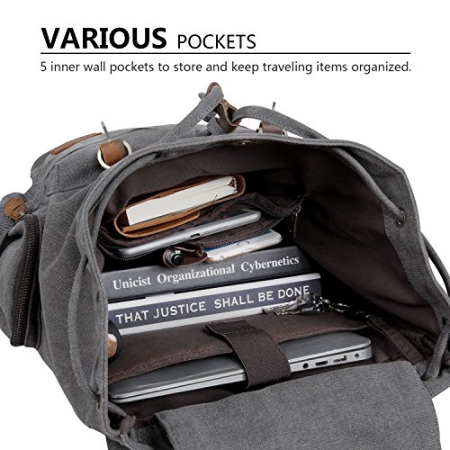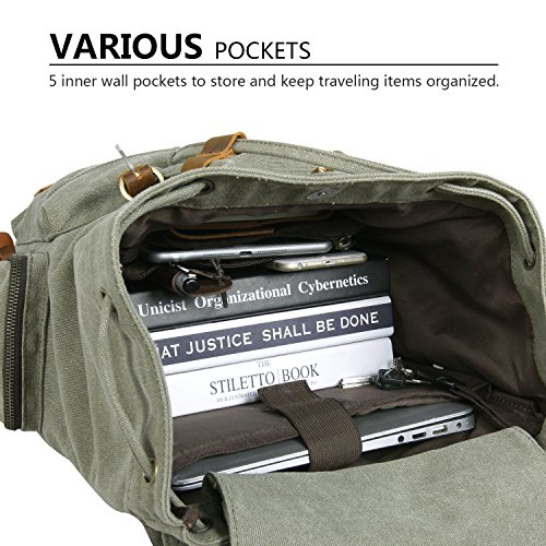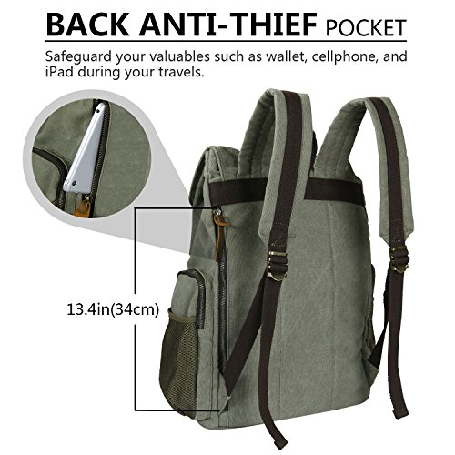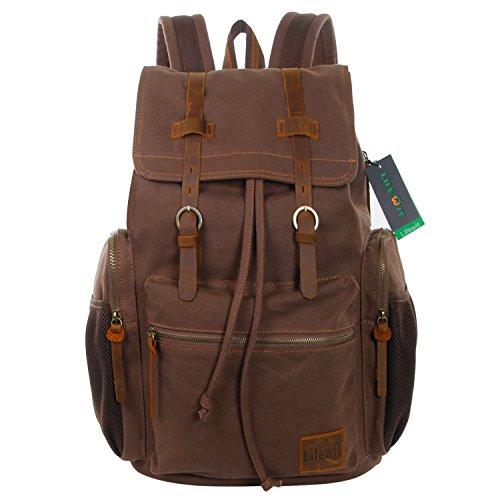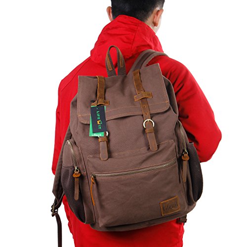 Description: Overall storage spaces include 1 main compartments with 11 pockets,1 keychain to store and organize all your items from small to big, disposable to valuable. To further enhance upon the usability of previous version of the bag, implemented on this generation¡?s bag are larger overall dimensions. The shockproof laptop compartment is also upgrades to fit laptops of up to 17.3¡± in size. The closure features drawstring and magnetic button for extra security. Constructed with premium high-density canvas fabric, genuine leather trim, SBS zips, and vintage brass hardware for vintage appeal and long lasting performance. The padded adjustable straps and back panel provide maximum support for your shoulders and back area to offers extra comfort during long carriage. Anti-thief pocket located on hard to reach back panel will safeguard your valuables such as wallet, cellphone and passport during unpredictable travels. The size of the pocket is relative to the entire back panel area. The Abundance in space also allows for storage of large items such as documents and tablets. Specification: Material: Canvas Genuine Leather Dimension: Recommended Laptop Size 17.3¡± Gender: Unisex Item Type: Canvas Vintage Backpack Color: Coffee Weight: 2.1LB Pockets: Laptop compartment x 1 Large front zipper pocket x 1 Full size back pocket x 1 Side zipper pocket x 2 Side mesh pocket x 2 Inside zipper wall pocket x 2 Inside small wall pocket x 2 Inside Velcro pocket x 1 Washing Instructions: -DO NOT machine wash -DO NOT clean with hot water -DO NOT clean with alkaline detergent -Clean with room temperature water -Dry in ventilated area without direct sunlight exposure -Wash separately Package Content: Canvas Backpack x 1 0 |