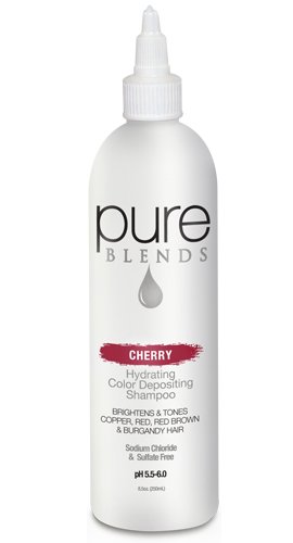 Pure Blends cherry color depositing shampoo is sulfate and sodium chloride-free. Red iolet base maintains the coolness of red, red brown, and burgundy tones. Created with an herbal blend and keratin and collagen infused, this hydrating formula will eliminate color fade and color washout. Perfect for a try on color. No processing time is required. Compatible with all permanent and semi-permanent color brands as well as all smoothing systems and relaxers. Available for home use.Feature