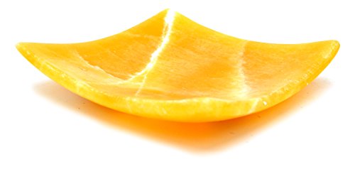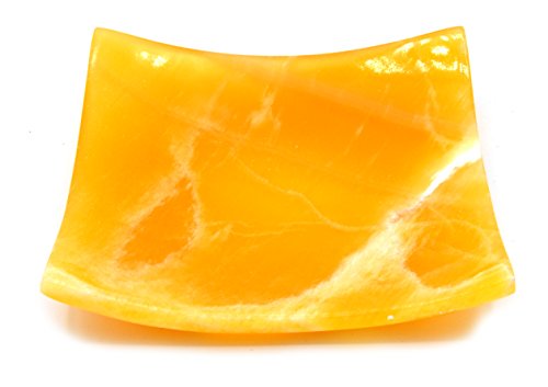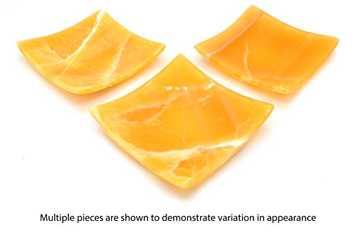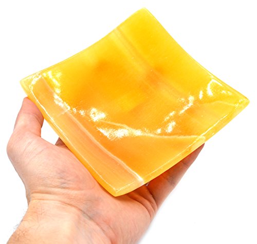 Warm Orange Crystal Stone Square Bowl, 5" Wide (0.75lbs), Carved from Real North American Calcite - The Artisan Mined Series by hBAR