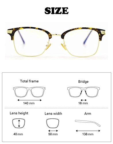 ❤ABOUT THE GLASSES -- Material : Metal & Plastic Lens Material : Plastic Clear Lens Lens Size : 50-40-18-138 mm 1.97-1.57- 0.71-5.43 in