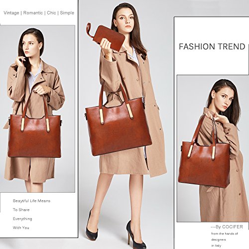 100% New Tote Purse of COCIFER Brand! Outer Material: High Quality Greased Leather This is faux leather, so it is normal of a little leather smell, putting it in well-ventilated areas or putting in some orange peel for few days , then the smell will disappear Inner Material: Polyester Closure: Zipper Main Purse Size: Approx 13.8*11'H*5.2'W / 35*13*28CM (Fit up to 13' laptops) Smaller Removeable Purse Size: Approx 7.5*4.7 inches (L*H) / 19*13CM Height of Handle: 8.7'/22CM(long enough to put on shoulder) Size may be 2 cm/1 Inch in accuracy due to hand measure Occasion: Versatile Size may be 2 cm/1 Inch in accuracy due to hand measure; ----------------------------About The Return Policy---------------------------- COCIFER offer convenient after-sales service: If customer receive broken, damaged or wrong item, customer only need to send a picture to us will be ok, and then we will refund or resend in 24 hours,and customer need not to return it to us. If customer dislike the item, we can offer return, or give several suggestions that we think is better or more convenience. if for other reasons, we encourage our customer contact us, we will response in one business day and do our best to service you. 0