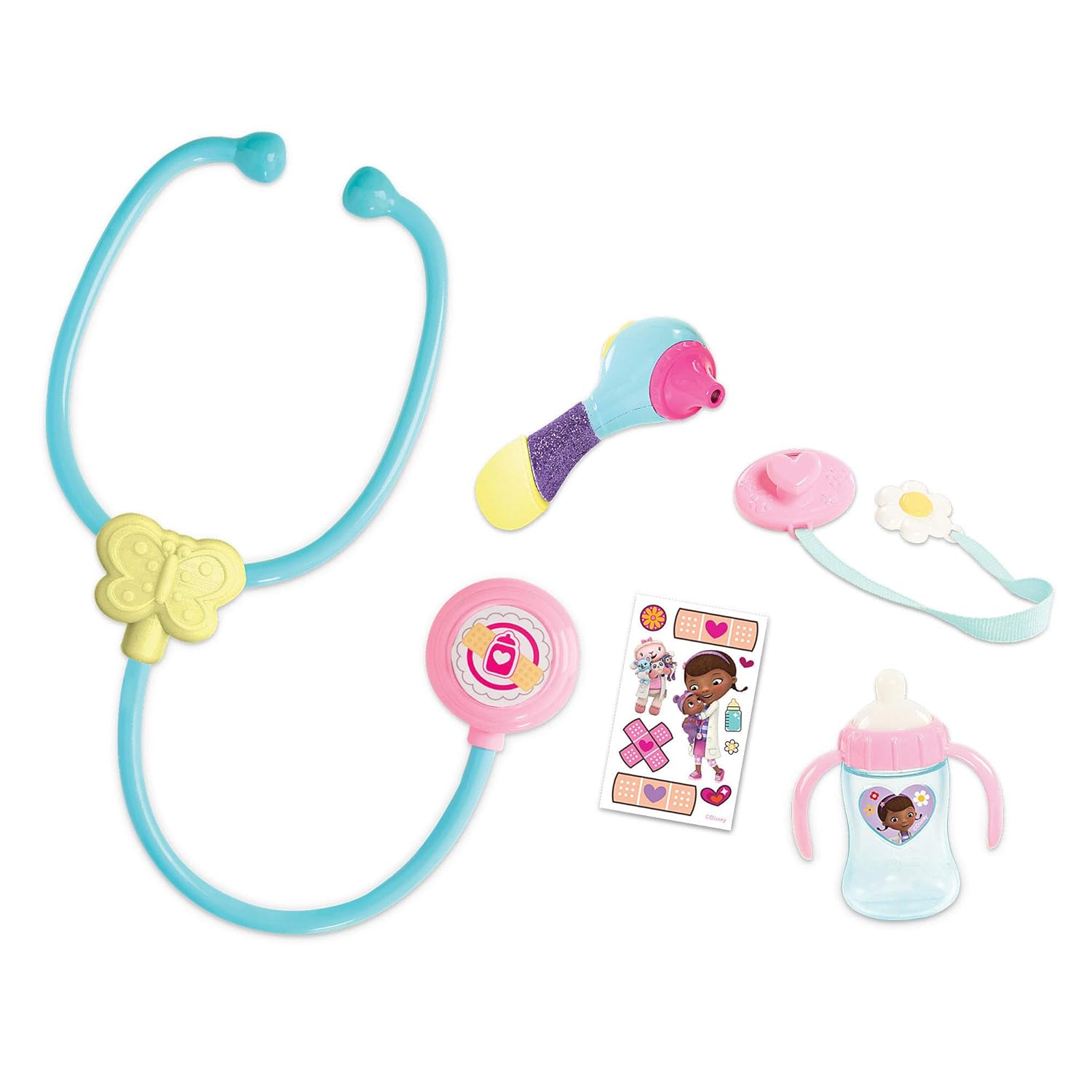 赤ちゃんの診察やお世話ができるセット 泣き声や心音、ドックの声(英語)などの音や光が楽しめる聴診器 その他哺乳瓶などが付属 赤ちゃんのサイズ:約30cm LR44電池3個使用(付属)