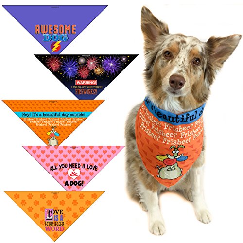 -. Binding : Misc. -. Brand : Stonehouse Collection -. EAN : 0604776237556 -. Feature : 5 fun dog bandanas. / Make a very fun unique gift for dog owners / Printed on polyester and machine washable / Fits most Small dogs / 20 inches long (what goes around neck) by 13.5 inches each side. -. Label : Kersten Enterprises, LLC -. Manufacturer : Kersten Enterprises, LLC -. PackageQuantity : 1 -. ProductGroup : Pet Products -. ProductTypeName : PET_SUPPLIES -. Publisher : Kersten Enterprises, LLC -. Size : 33x22x22 -. Studio : Kersten Enterprises, LLC -. Title : 5 pc Fun Dog Bandana - Small - From Funny to Adorable Dog Scarf Accessories - Great Dog Gift -. UPC : 604776237556