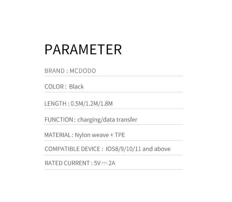 Name:Cable for iPhone 8/8 Plus/X/6/6s/6 Plus/5/5s/5c