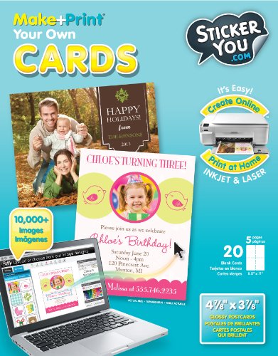 -. Binding : Misc. -. Brand : StickerYou -. EAN : 0181818000212 -. Feature : Prints on any inkjet printer / Custom Design with 10,000 images, text and uploads at the Sticker You website / Comes with five 8.5 x 11 inch glossy postcard sheets / Creates 20 Cards / Cards are writable -. Label : Sticker You -. Manufacturer : Sticker You -. Model : 2602 -. MPN : 2602 -. PackageQuantity : 1 -. PartNumber : 2602 -. ProductGroup : Art and Craft Supply -. ProductTypeName : HOME -. Publisher : Sticker You -. Studio : Sticker You -. Title : Sticker You 2602 Make + Print Your Own Cards and Postcards, 20 Cards -. UPC : 181818000212