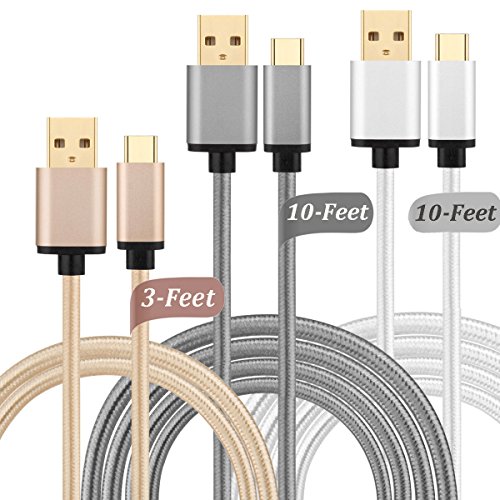 -. Title : USB Type C Cable, X-EDITION Pack-3 (3ft x1, 10ft x2) Gold Plated Fast Charging Speed Long Braided Charger Cord for Google Pixel /XL Nexus 5X / 6P, LG G5, HTC 10, Oneplus 2/3, Lumia 950 /XL More