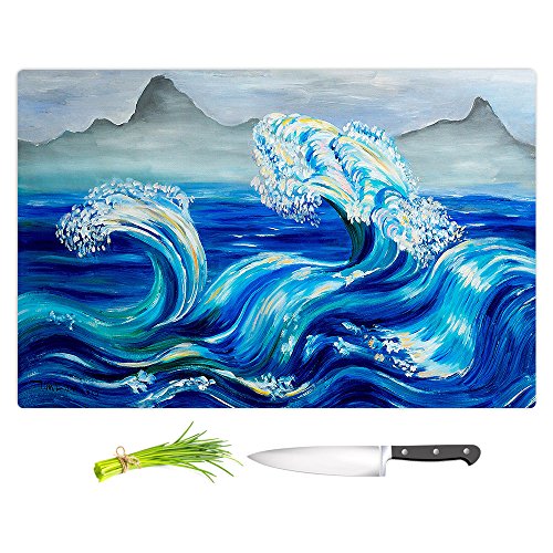 DiaNoche Designs CB-LamFukTimBlueWavesMountains1 Artist Lam Fuk Tim-Blue Waves Mountains Cutting Boards from, Small 11" x 8"