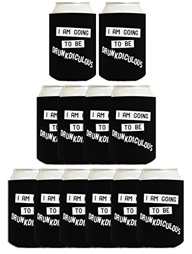 Funny Beer Coolie I'm Going to Be Drunkdiculous Funny Drinking Party Gift 12 Pack Can Coolies Drink Coolers Black