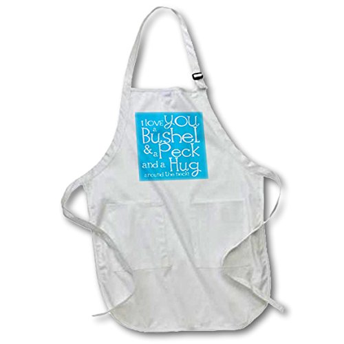 3dRose apr_193476_1 I Love You a Bushel and a Peck. Blue-Full Length White Apron with Pockets, 22 by 30-Inch