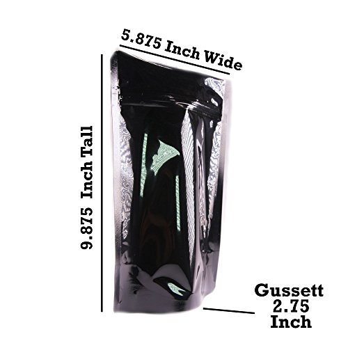 Attractive and durable Resealable Gloss Black Stand-up Pouches with Zipper Lock enclosure expand at the bottom for attractive shelf-stacking display and storage.
