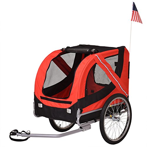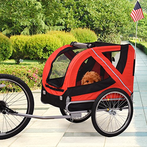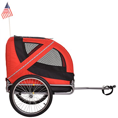 Studio : LAZYMOON Publisher : LAZYMOON Binding : Misc. Product Description Pet Bicycle Trailer is suitable for versatility. For use on a multi day bicycle tour, keeping your most of gear on the trailer. When your pet needs daily walking, hooking your trailer up. The lightweight steel frame is durable and steady. When you plan to use the trailer towed behind the bicycle, just hooking up the fork to the rear axle of bicycle. A free bicycle hitch adaptor/connector included for connecting to the axles. The inner dimension of trailer is 31.5 D *22 W *23.6 H inches. The maximum capacity is approx. 66 lbs. Collapsible steel frame makes it easily to set up or fold down for storage or transportation. The simple design is convenient for you to assemble and store. Specification: Material: Metal frame, polyester fabric Color: Red w/ black The dimension inside: 31.5 D x 22 W x 23.6 H inches The wheel size: approx. 2 x 20 inches Folded dimension: 33 L x 9 W x 25 H Inches Weight capacity: 66 lbs Shipping weight: 27.5 lbs Package contents: 1 x Pet Trailer 1 x Instructions 0
