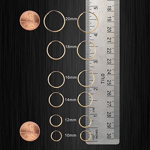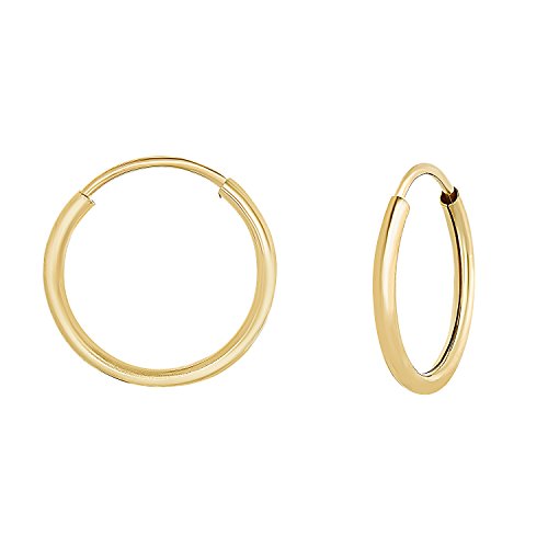 -. Title : 14k Yellow Gold Round Endless Hoop Earrings - 10-18mm