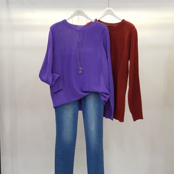 세가지 컬러의 라운드 니트입니다 베이직한 스타일로 깔끔하고 단정한 기본 니트입니다.팬츠, 스커트 등 다양하게 코디가능해요.색상은 퍼플 와인 그린입니다.