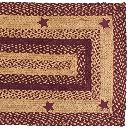 Star Wine Braided Area Rugs are durable, earth friendly and hand crafted. 100% jute braided area rugs with wine and tan braided bands rich in color and made of the finest jute fibers. Braided rugs bring an instant dose of warmth, color and style to any room. The bands are carefully stitched so that every piece is as durable as it is wonderful. Practical and beautiful, these area rugs add charm to any room in your home. Mild soap.Please Note :- We strive to display as accurately as possible the colors of products shown on this website. Due to the inconsistencies of various display monitors, the color you see on your screen may not be a totally accurate reproduction of the actual product. Screen images are intended as a guide only and should not be regarded as absolutely correct.Feature