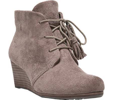 The Dakota Wedge Ankle Boot is attractive style and non-stop comfort. The incredibly soft faux suede upper has a totally functional lace up closure on the vamp, which lets you get a fit that's just right for you. Features include: Lace up closure Faux suede upper Tassel and stitching details Memory Fit® Foam insole for all-day wearability Traction outsole for added stability.