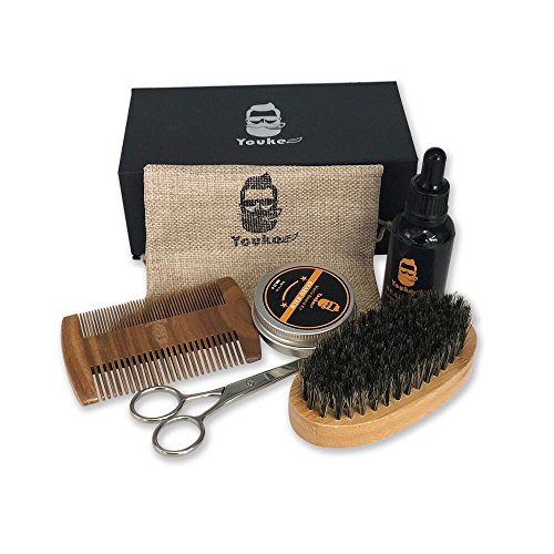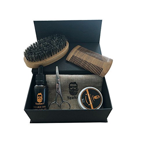 Beard Grooming & Trimming Kit for Men Care - Beard Oil, Beard Wax, Scissors, Brush & Comb in One Set, Premium Nature Mustache Growth Castor Oil with Balm...