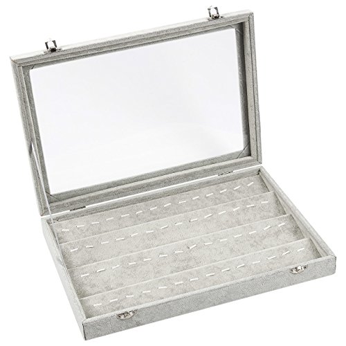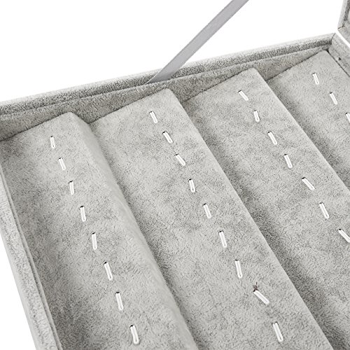 Jewelry Display Case – Velvet Pendant Jewelry Showcase Display Organizer, Stackable Jewelry Drawer Storage Holder for Pendants and Charms, Grey, 13.75 x 2 x 9.5 Inches