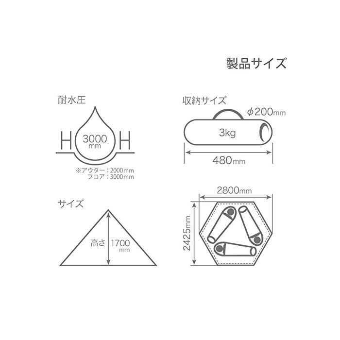 DOPPELGANGER OUTDOOR 2-3명 용 원 폴 텐트 T3-44 경량&콤팩트 간단 설치