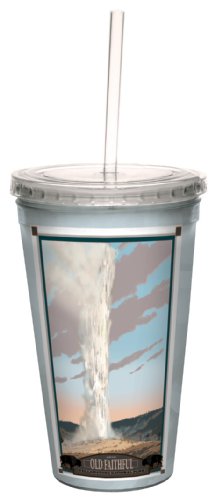 Tree-Free Greetings cc33084 Scenic Yellowstone National Park Old Faithful by Mike Rangner Artful Traveler Double-Walled Cool Cup with Straw, 16-Ounce