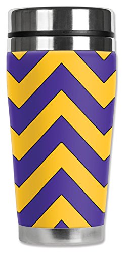Mugzie 488-MAX "Colors of LSU" Stainless Steel Travel Mug with Insulated Wetsuit Cover, 20 oz, Black