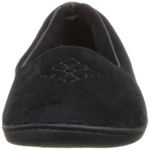 Soft, microfiber velour feels like it was made for your feet in a pair of Dearfoams Embroidered Velour Slippers. Featuring gentle foam cushioning, these delicate women's slippers fit like a dream, with skid-resistant outsoles for sure footing, and tone-on-tone embroidery for a touch of style. * Polyester velour upper * Gentle Foam Cushioning * Skid-resistant sole * Imported * Machine wash, dry flat * Sizes: S(5-6), M(7-8), L(9-10), XL(11-12)