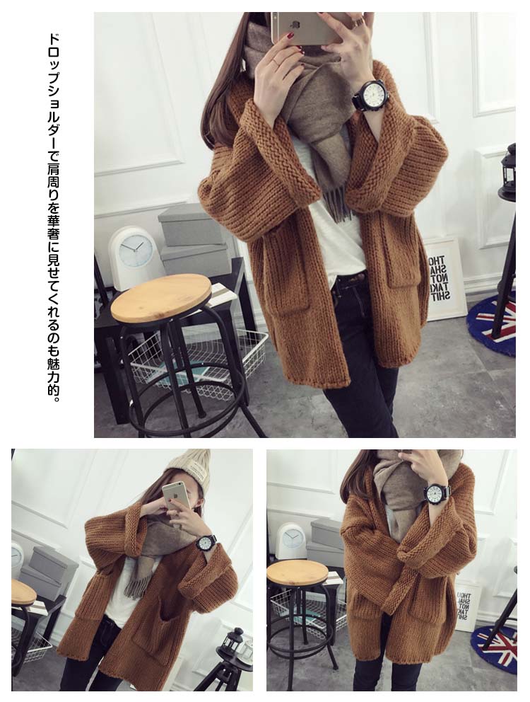 | ポケット付きゆるニットカーディガンが再登場!両サイドに大きなポケットとゆるシルエットがルーズでかわいい一着。ざっくりした編みのニット素材になります。おヒップ隠れるロング丈も今年らしい。ドロップショルダーで肩周りを華奢に見せてくれるのも魅力的。すっきりしたボトムと合わせることをおすすめ。 | |