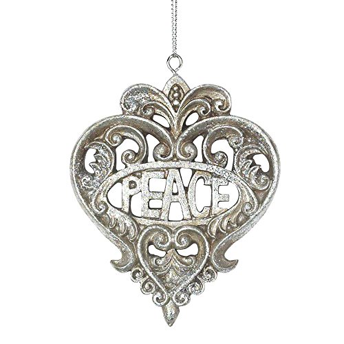 Peace With Scroll Pattern Detail Silver Glitter 3 x 3.5 Resin Stone Christmas Ornament