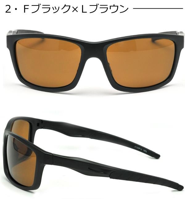 | 仕様 | UVカット率:99.9%以上 可視光線透過率:20% 【1・Fブラック×Lスモーク】 フレームカラー:ブラック レンズカラー:スモーク 【2・Fブラック×Lブラウン】 フレームカラー:ブラック レンズカラー:ブラウン |