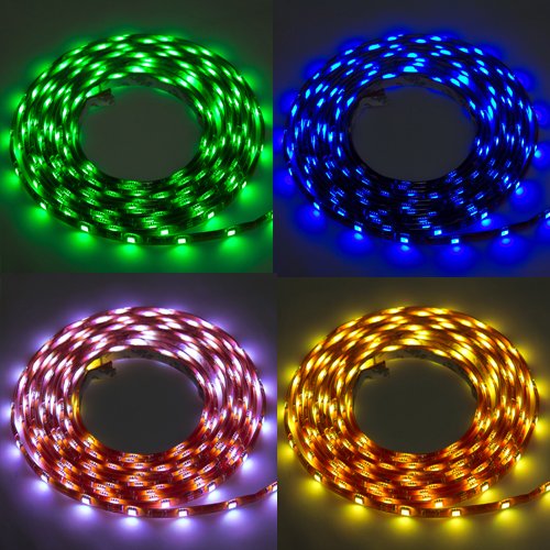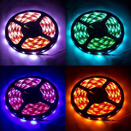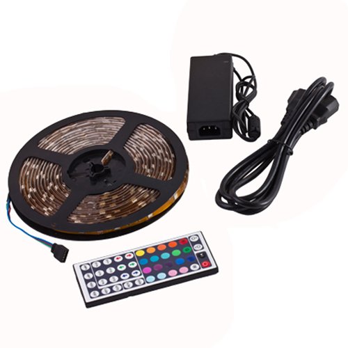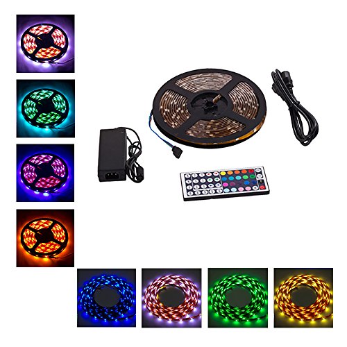 Flexzion LED Strip Light 16.4FT 5M SMD 5050 Waterproof 300LEDs Color Changing RGB Flexible Lamp Kit With 44 Key IR Remote Controller and 12V 5A Power Supply for Home Decor