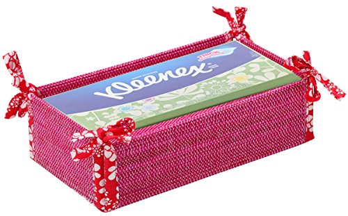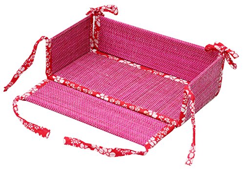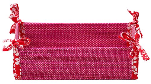 Last 5 Units Left - SouvNear Multiuse Folding Container / Holder / Case / Box in Fuchsia Pink Bamboo Stalks & Red Cotton Fabric - Handmade Dresser Bathroom Kitchen Organizers