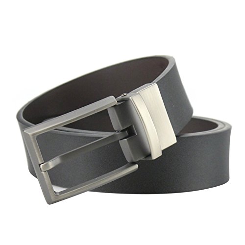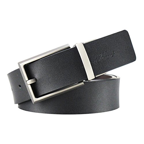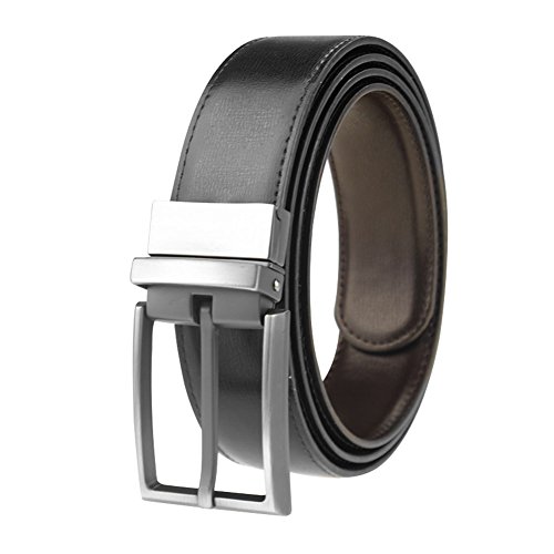Maikun men's reversible leather business belt with rotated buckle sizes from 90 to 130cm, made with smooth stiff leather. The belt is reversible from black to dark brown to meet your dress pants occasions. The look of this belt is simple and classic, you can always wear it with dress and casual pants.