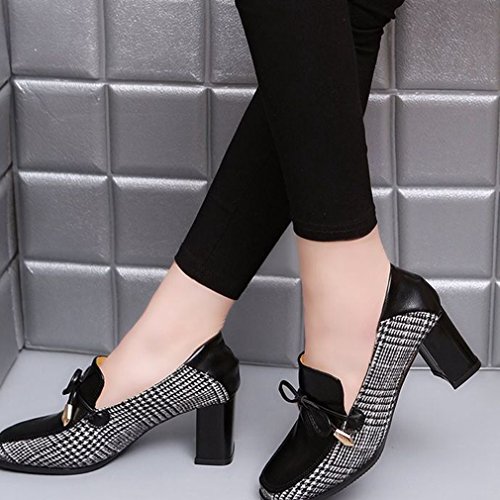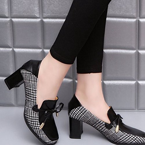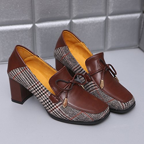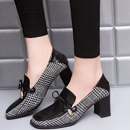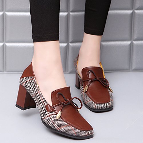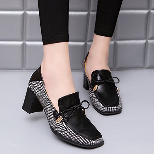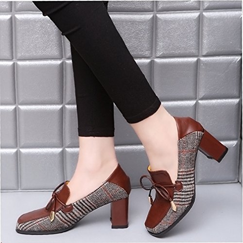 Product Description GIY Women's fashion classic pumps loafer, square toe tassel grid comfort slip on block high heel Penny loafer,dress oxford shoes, High quality and durable rubber sole, these fashion casual loafers shoes is great for wearing to work or dressing up an outfit for a day and night out. features cushion soft technology for added comfort. 0