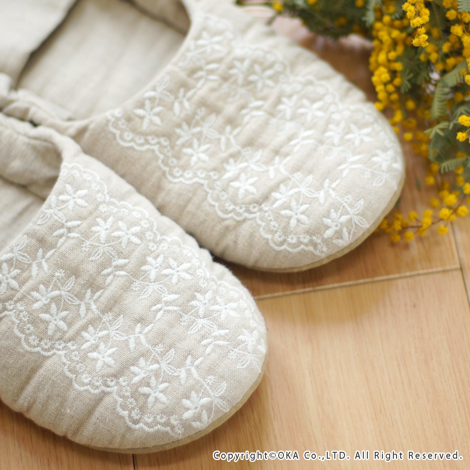 Room Shoes M size BE Oka washable Japanese-made lace embroidery