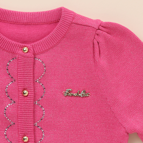 | 톡톡 튀는 화사한 핫핑크 컬러의 가디건 입니다. 단작에 들어간 블링블링한 핫피스 장식과 고급스러운 골드 단추 장식, 골드 로고 장식 등으로 프랜치캣 특유의 무드를 살려준 고급스러운 니트 아이템입니다. 동일한 니트 조직의 리본 장식으로 러블리한 느낌까지 더해줬습니다. 블라우스 아이템과 스커트, 점프 스커트 아이템들과 코디하기기 좋은 소장하기 좋은 가디건입니다. | |