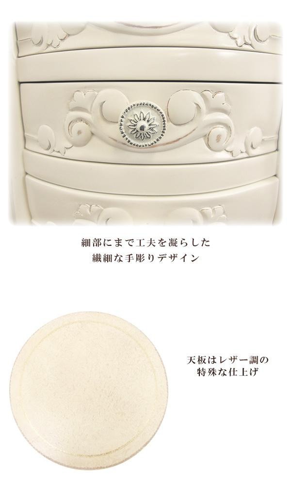 | 天板はレザー調の特殊な仕上げになっており、ネコ脚、手彫り仕上げ、引出内部の底はフェルト貼りなど、細部にまで工夫を凝らしています。玄関やリビング等におすすめです。 |