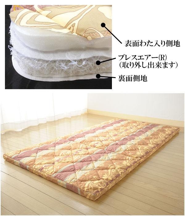 | 素材・材質 | 側地:ポリエステル85%、綿15% 詰物:ポリエステル100%(0.5kg) 中芯:指定外繊維(ブレスエアー(R))100%(約2.6kg) 中芯側地:ポリエステル100% |