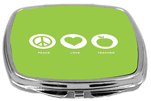 Rikki Knight Peace Love Teacher Design Compact Mirror, Lime Green, 2 Ounce