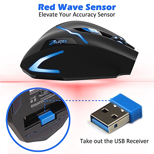 -. Title : 2.4G Wirelss Gaming Mouse, Zelotes Wireless Mouses Gaming with USB Receiver, 3 Adjustable DPI Levels Gaming Gamer Mice, 6 Buttons for Notebook, PC, Laptop, Computer, Macbook- Black.