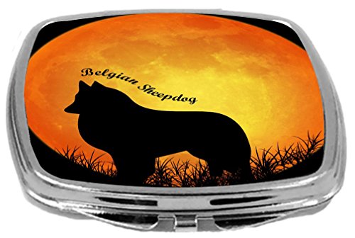 Rikki Knight Dog Silhouette by Moon Compact Mirror, Belgian Sheepdog Silhouette By Moon, 3 Ounce