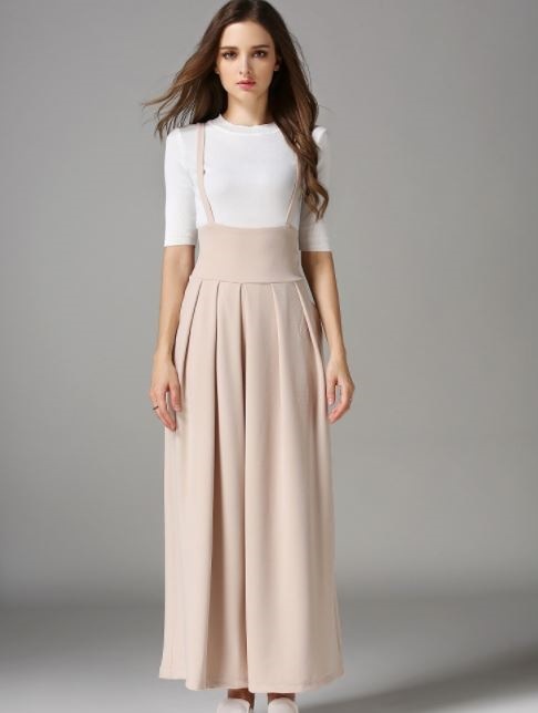 細めの吊りベルトはレトロで中性的な趣を作り出す落ち着いた配色は