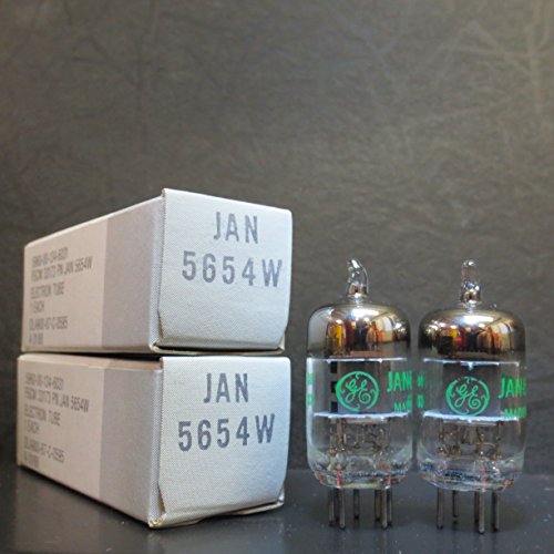 Closely Matched Pair (2 tubes) of vintage NIB/NOS GE JAN 5654W Vacuum Tubes. Considered one of the best of the 5654/6AK5/EF95 family of tubes for audio use. 5654W tubes are Mil. Spec. (JAN) Electron Tubes - Higher Durability and Life. Vacuum tubes were obtained from factory sealed military surplus boxes and are guaranteed to test at NOS levels.