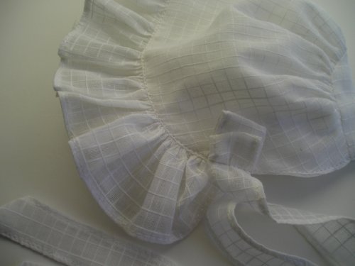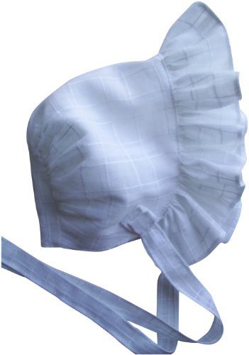 Studio : My Baby's Closet Publisher : My Baby's Closet Binding : Apparel Product Description Our sweet Baby Bonnet in soft, white cotton voile is perfect for your baby girl. Such "Vintage Appeal". Made from a soft white cotton voile, it has a fully ruffled brim, fabric ties and a soft cotton lining. This bonnet is a lightweight and comfy fabric for your baby's comfort. Matches our White Voile Bloomers, also sold in our store. Perfect for baby's outfits in Spring and summer. Please order by Baby's head size as follows: Preemie fits up to about 13 1/2", Newborn fits up to about 15 1/2", 3 month fits up to about 16 1/2", 6 month fits up to about 18", 12 month fits up to about 19", 18 month fits up to about 20" and 24 month fits up to about 21". Designed by Liz MacIntyre for My Baby's Closet and made in USA. Machine washable. 0