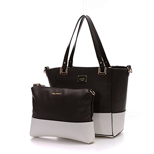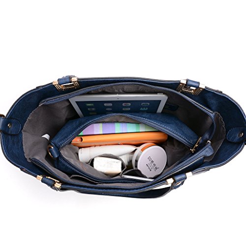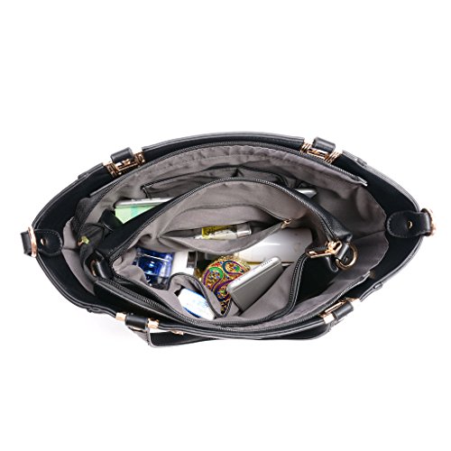 -. Feature : Material: High-quality PU leather with golden hardware. / Approx Dimensions: Handle drop-8.6" ; Tote bag: 16.1"L(top)/10.6"L(bottom) x 11.02" H x 5.5"W. Cross-body bag: 12.5"L x 9.25" H x 1.57"W. The weight is 1.45 + 0.81=2.26 lb. / Zipper closures, one big top handle bag, one crossbody shoulder bag. Includes 1 interior back wall zipper pocket and 2 interior slip pockets.Easily carry A4 file, mobile phone, wallet, cosmetic, IPAD, umbrella and other daily things. / Big capacity, well and fashion design, good choice for traveling and dating .Available in 6 attractive colors to fit your personal style. Suitable for women ,girls and ladies. / Please allow little color difference due to different camera or light environment; Little smell is normal, putting it outside for few days,the smell will disappear.