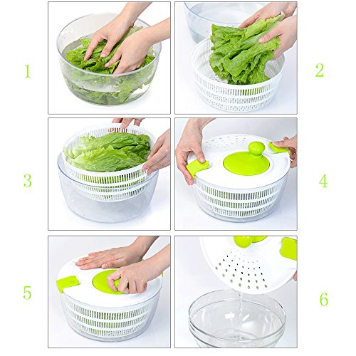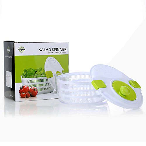 When we make the salads, we need to wash the vegetable and dry up the water. It is not convenient, especially in the winter The Vinipiak Salad Spinner can help you *Easy to use Put the watery vegetable inside it, close the lid and press the green button. Then rotate the handle, the water will be dried up easily. it is convenient to storage when we do not use it, *Super quality and healthy material This manual salad spinner is made out of nontoxic plastic for a healthier eating and 100% BPA free *Large capacity Dimension is 10"x 10" x6",almost 6 Quart *Easy to clean Dishwasher safe and all parts can be taken apart. 0 |