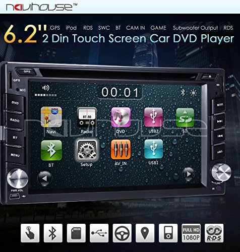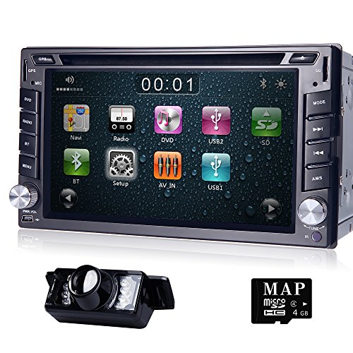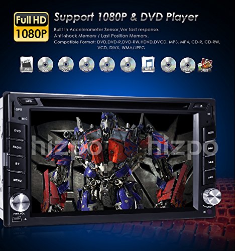 HIZPO In Dash Double DIN Car DVD Player with 6.2 Inch Touch Screen LCD Monitor IPOD/Bluetooth/GPS Navi/SWC/3G+ Free Map + Rear Camera